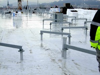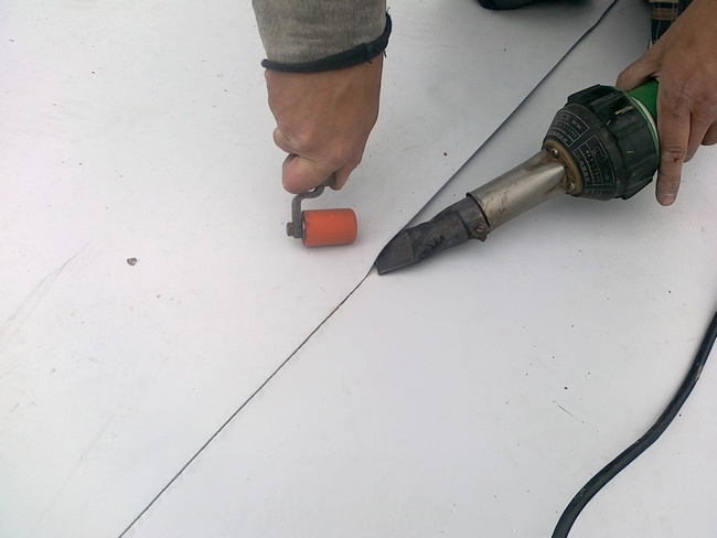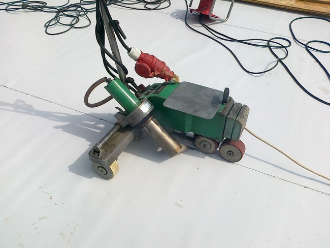 Pro svaření větších ploch používáme svařovací automat značky "Leister-varimat". Tuto techniku jsme použili například na skladové hale Jipocar Brno.